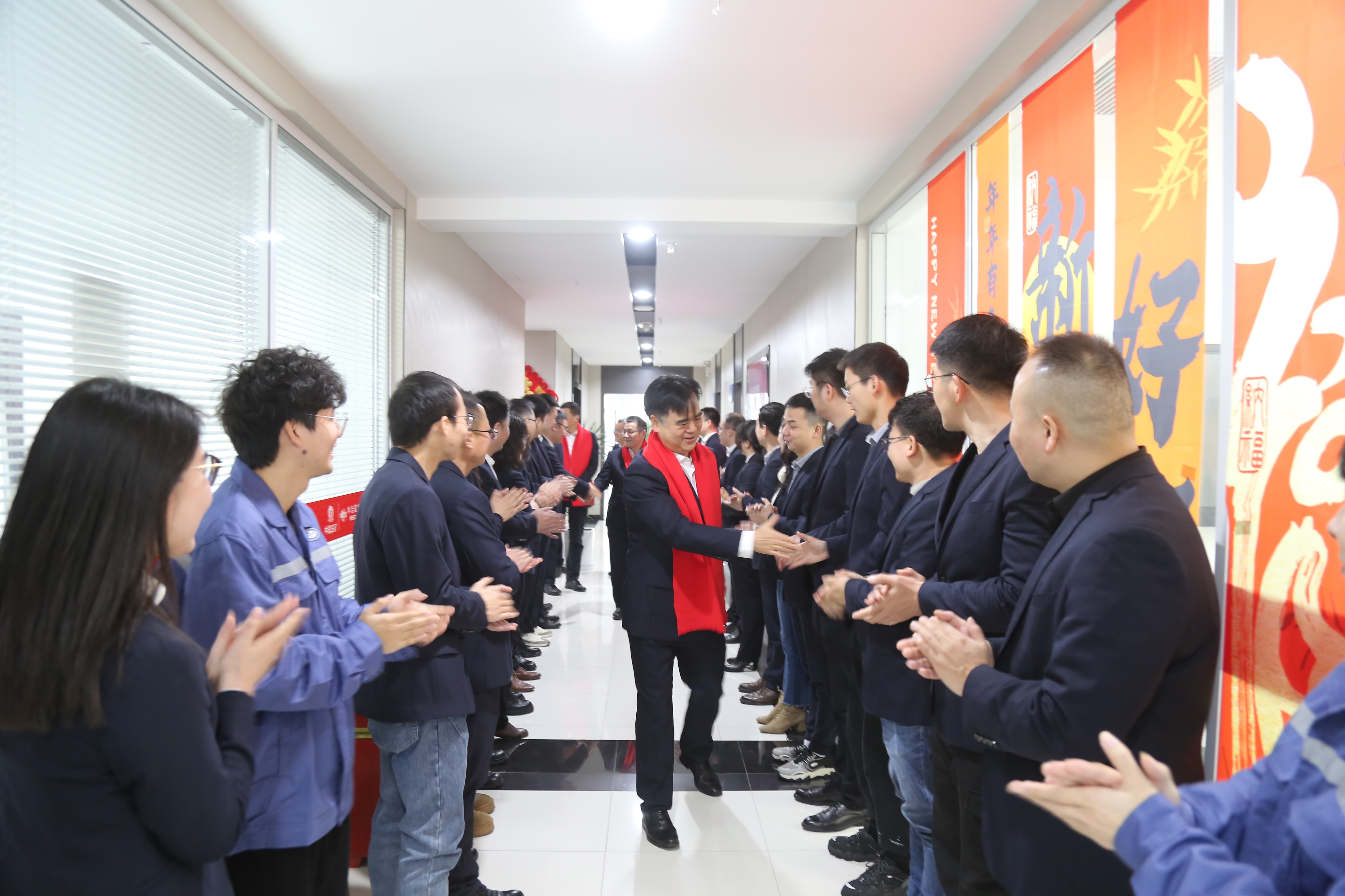 “大家新年好!”“龍年大吉!”“祝大家龍馬精神、龍騰虎躍!”在喜氣祥和的氛圍中,臧中海一行親切詢問大家的過年情況,與全體員工互致新春的美好祝福,并鼓勵大家在新的一年里,聚焦企業(yè)高質(zhì)量發(fā)展,圓滿完成全年任務(wù)目標(biāo),著力增強企業(yè)核心功能、提升核心競爭力,圍繞“1545”發(fā)展戰(zhàn)略,夯實基礎(chǔ)管理,堅持改革創(chuàng)新,持續(xù)再轉(zhuǎn)型再升級,在新賽道上跑出“加速度”、拼出“新高度”!